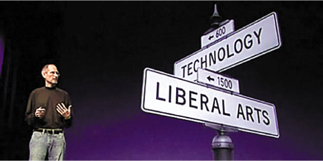 用户眼中的苹果的产品优雅时尚,透着那么点逼格,令人欲罢不能。乔布斯的产品发布会上,用过这样一张人文与科技的交汇的图来结尾: