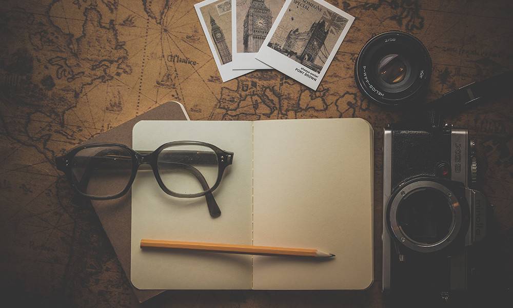 笔记本眼镜钢笔照相机工作台