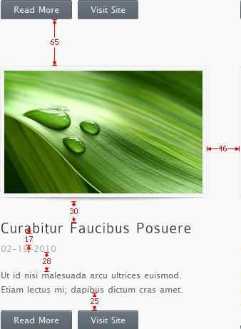 这个设计里我想要强调一下留白和细腻精致这两个设计要点。要让设计看上去清爽、透气,留白在其中的作用非常重要。不用多说,看看下图各设计元素之间的间距,你会发现设计师特别舍得在各元素之间留出空间来,然后我们再对比自己设计中经常使用的间距就能发现问题所在了。
