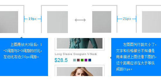 上图中区块上下间距与左右间距不匀称,和前几的列子一样,文字与区块上下垂直间距不协调,下图是修正后的结果。
