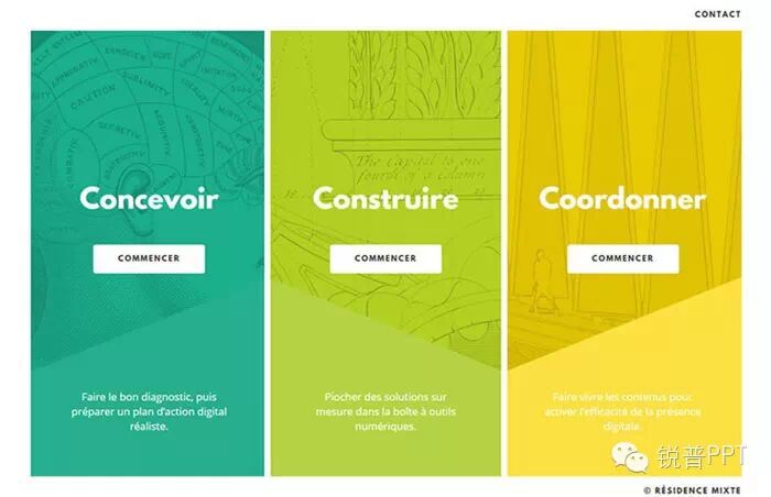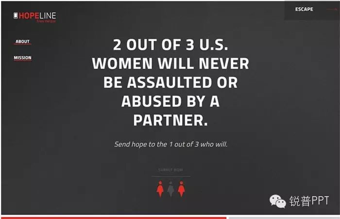 最后,还有一些网站采用这样的方式,让设计完全在一屏内展现。这是响应式设计的一个分支,因为它会适应屏幕尺寸。不过在这个绝佳案例中,整个设计的适应方式完完全全吻合屏幕,没有产生滚动条。没有滚动,意味着内容必须极度聚焦,而且要建立清晰的内容层次。我发现这些网站的聚焦能力和清晰程度,令人耳目一新。