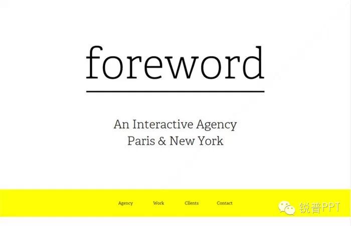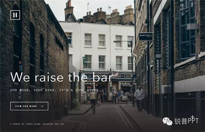 可以发现,移除任何感官上的页头和页尾后,内容得到了极大的强调。你会先看到公司名称,然后是关于他们经营内容(和场所)的清晰描述,而不是先看到页头。之后才是主导航。让用户浏览之前先重点强调品牌,这个方式太棒了!它造就了优美的视觉流程。有趣的是,当你滚动页面时,页头和界面才出现。美观且有效的排版,这种模式的运用颇具启迪性。