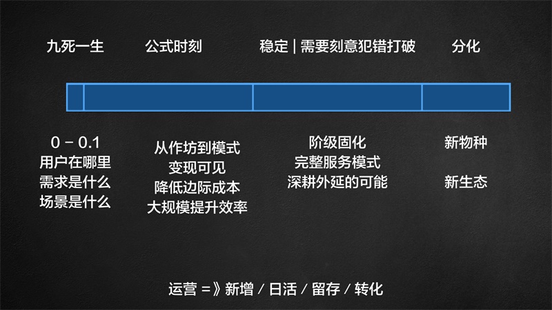 - 判断发力点:新增(渠道和打法)、留存(价值)、传播(渠道和场景)。