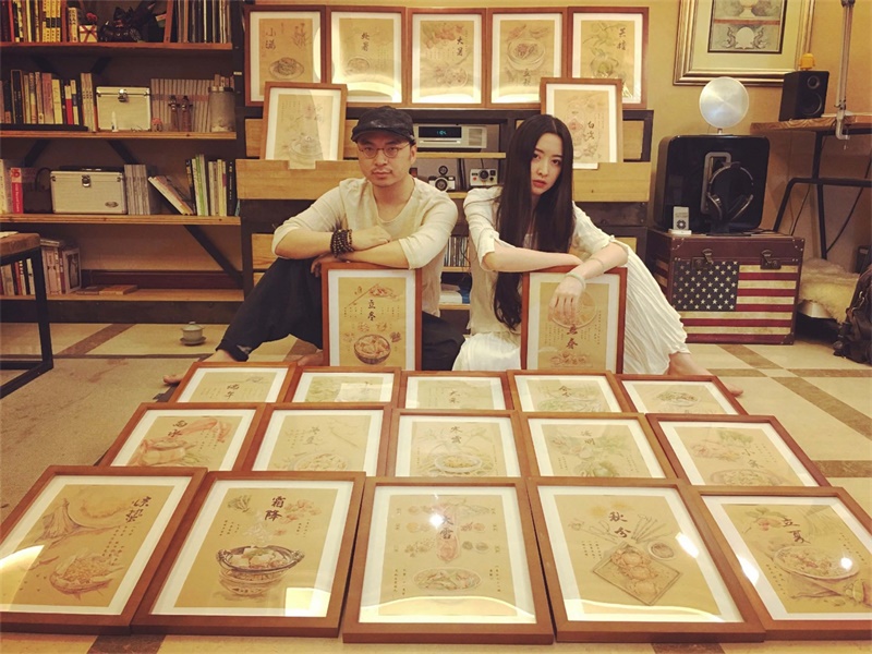 出于对传统文化的热爱,对于古风文物,从不敢怠惰,我们会到当地采风,感悟和处理每个细节,出了第一批画,后来渐渐产出大家熟知的节气和饮食画作。通过相先生讲解,了解到不同食物的背后蕴含着雄厚的文化和故事,不仅是画面美,其中内容散发出的味道更是美味至极,现场同窗们直喊饿~