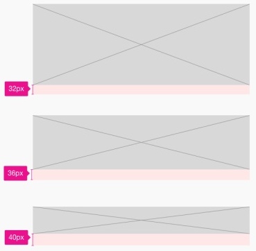 - 当以下比例不能知足网页需求时,可以用4px为基准,通过增长其倍数,来调节尺寸,比如高度增长20px、32px、36px等。
