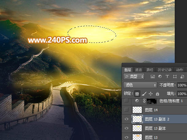 Photoshop给长城照片添加斜阳美景结果教程(3)