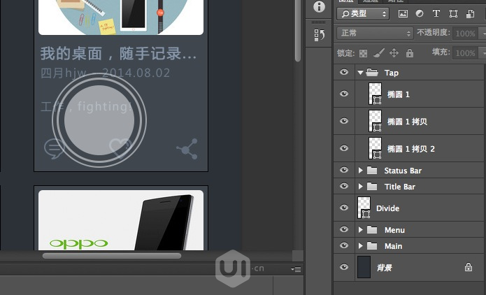 显示Tap图层组所有突出。使用移动工具,来上移Tap图层组和主要内容图层组