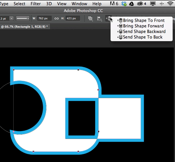 精通路径操作后,还应当学习如何利用路径排列来工作。路径排列也会影响图形结合的方式。这与图层结构的概念类似,可在层次结构中上下移动路径。上面的路径优于下面的路径。这个功能只有当你选择一个矢量蒙版或者矢量图形图层时才会在选项栏中显示。