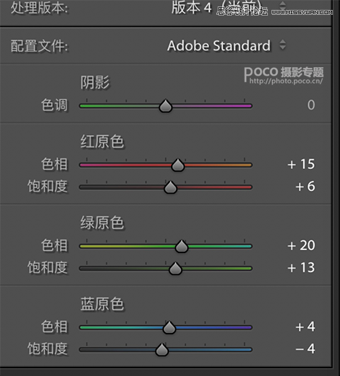 调整三原色,朱颜色重要是红纸肤色,饱和度和色相都右边移动,如许可以使肤色偏黄橙色(但是其实这步多余,后面发现调色影响了肤色,必要在ps中重新调整),绿颜色和蓝原色都往右边移动,让颜色更加蓝绿一些,同时降低饱和度,不然会变成老法师色。