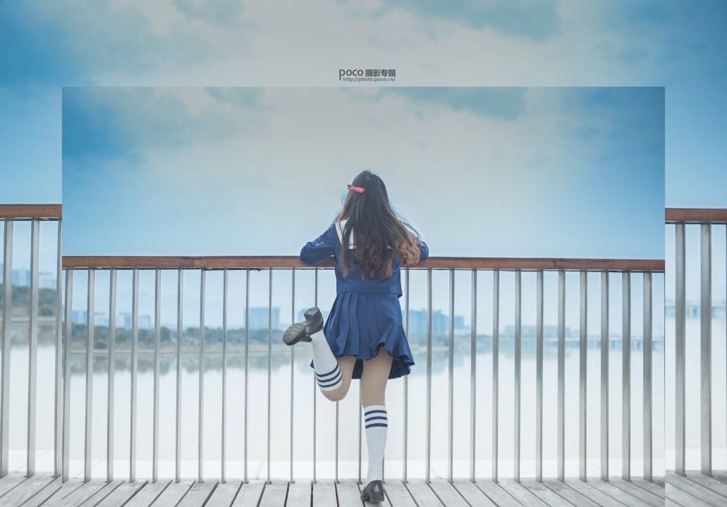 这组片子是同伙一时帮我拍的,器材5D3+35头。原片上的画面团体很灰白,不能凸出JK的日常小清新。因为拍摄时穿的是深蓝色的JK,名字叫“海深见鲸”,于是便想到可以把天空做成动漫的结果。