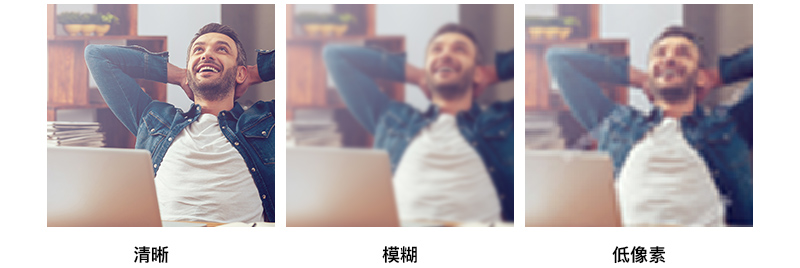 清晰自然是清晰度较好的图片,能够看清图片的细节内容;模糊是一种人为的图片处理效果,是一种设计表现手段;而低像素是由于图片分辨率过低导致的过渡像素不丰富,是最不提倡使用的图片形式。举个例子:同样是在1cm²的体积内表现黑白,如果只有两个像素就是黑到白的直接过渡,而如果有十个像素则会是从黑色—深灰—灰—浅灰—白色的柔和过渡。